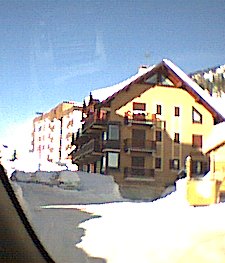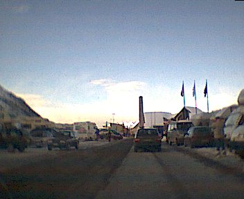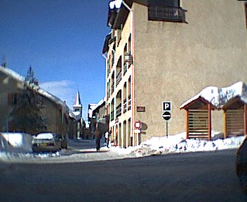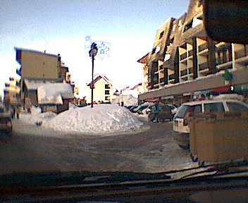 Sulla destra, in corrispondenza di una rotonda poco visibile (qui coperta di neve con un palo della luce in mezzo) parte una strada: